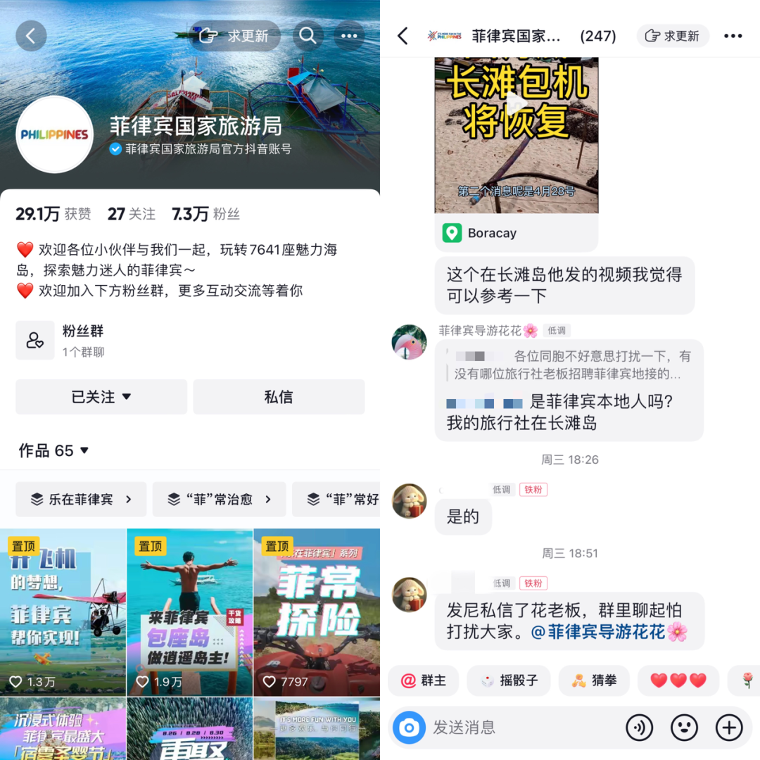 菲律賓旅游局抖音主頁(yè)及粉絲群