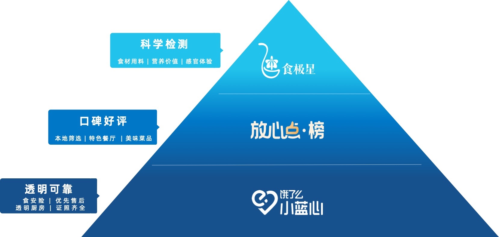引領(lǐng)食安建設(shè)透明可靠的“小藍(lán)心”,呈現(xiàn)城市食客口碑好評的“放心點?榜”,以及體現(xiàn)權(quán)威機(jī)構(gòu)科學(xué)檢測的“食極星”認(rèn)證,構(gòu)建起了餓了么為消費者實現(xiàn)“放心點”的業(yè)務(wù)落實框架。