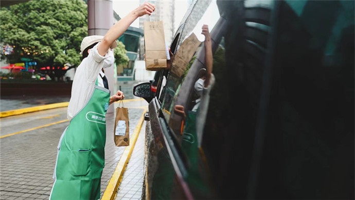 不用下車,不用進(jìn)店,幾杯熱騰騰的咖啡就已經(jīng)送到了顧客手上,完成了整個(gè)交易過(guò)程。