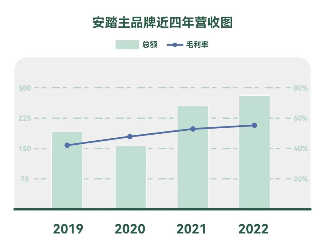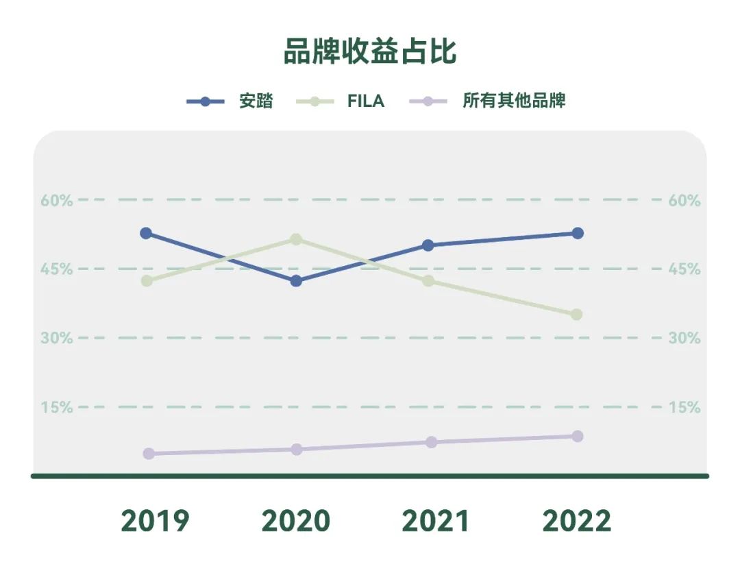 不過,其他品牌雖然勢頭強(qiáng)勁,但體量不大。2022年底,其占安踏總營收的比例僅為8.2%,經(jīng)營溢利在2022年同比增長40.8%%的情況下,才達(dá)9.07億元。