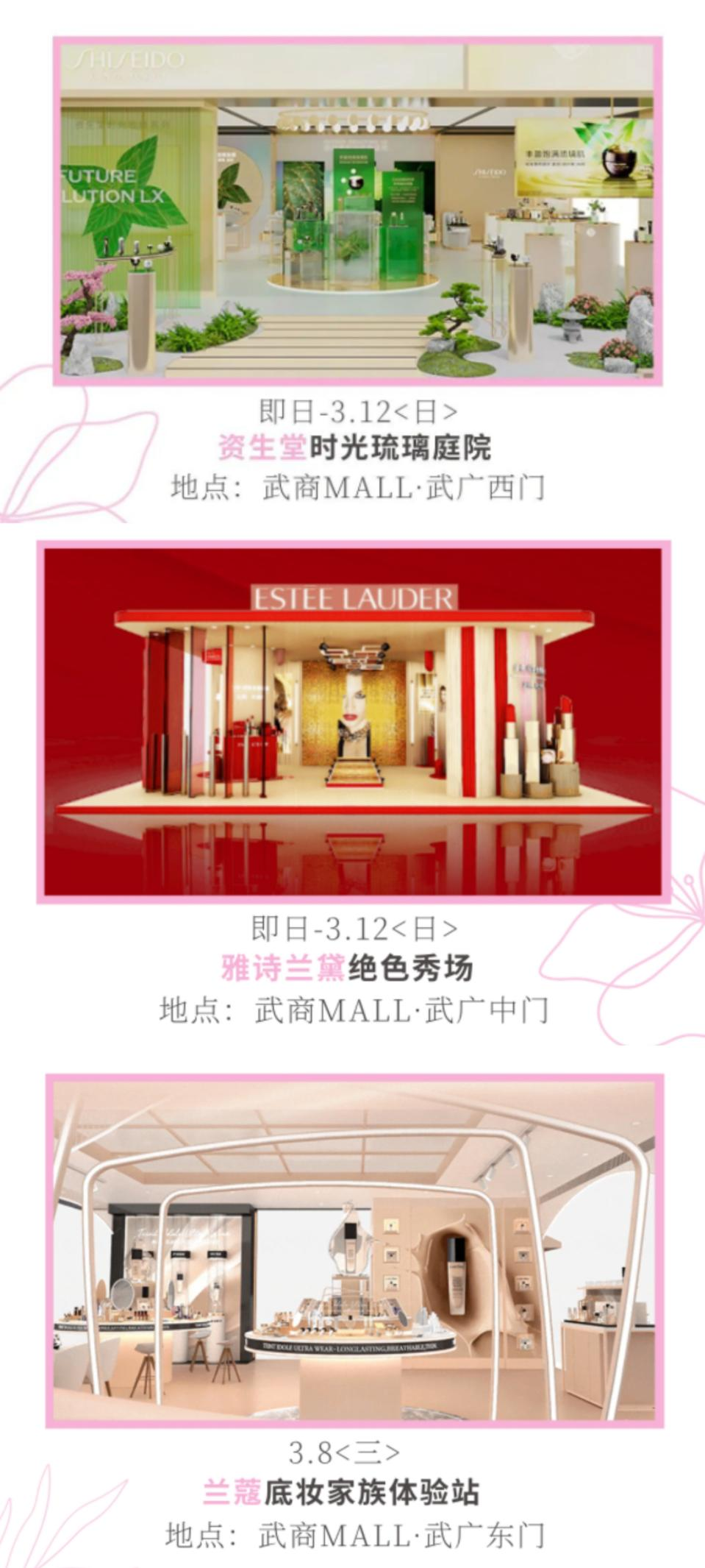 作為華中高端美妝消費“重鎮(zhèn)”的武商MALL武廣別出心裁,除了推出部分美妝品牌8.8折、3倍積分等活動外,蘭蔻、雅詩蘭黛、資生堂還在商場內搭建起獨家展臺,且單柜滿3000元還可獲得定制專屬肖像畫。