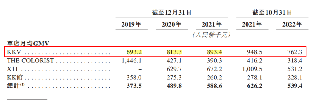 之所以盈利能力能不斷提升,必然繞不開單店模型。更新后的招股書首次公開了集團(tuán)旗下四大品牌的單店?duì)I收能力。從門店運(yùn)營(yíng)效益來(lái)看,四大品牌均處于較為穩(wěn)定的水平。以占比近7成的KKV為例。KKV單店月均GMV從2019年的69.32萬(wàn)元逐年提升至2020年81.3萬(wàn)元及2021年的89.34萬(wàn)元,并在2021年前十月達(dá)到94.85萬(wàn)元的新高,而2022年前十月因行業(yè)整體壓力降至76.23萬(wàn)元但依然高于2019年水平。