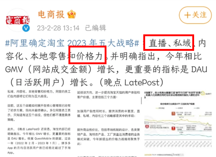 2月底,阿里巴巴的管理層們確定了淘寶今年的五大戰(zhàn)略,分別為直播、私域、內(nèi)容化、本地零售和價(jià)格力。