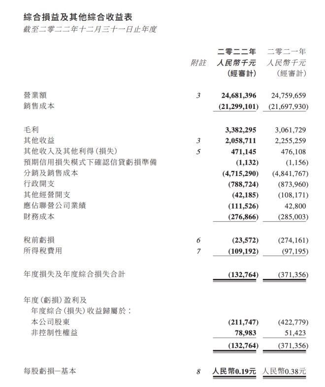 聯(lián)華超市2022年營收246.81億,凈虧損2.12億