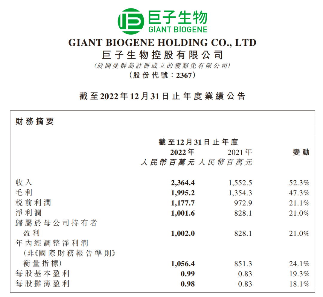 報(bào)告顯示,截止2022年12月31日止,巨子生物2022年?duì)I收23.64億元,同比增長(zhǎng)52.3%;凈利潤(rùn)10.01億元,同比增長(zhǎng)21.0%;攤薄后每股利潤(rùn)0.98元,同比增加18.1%。