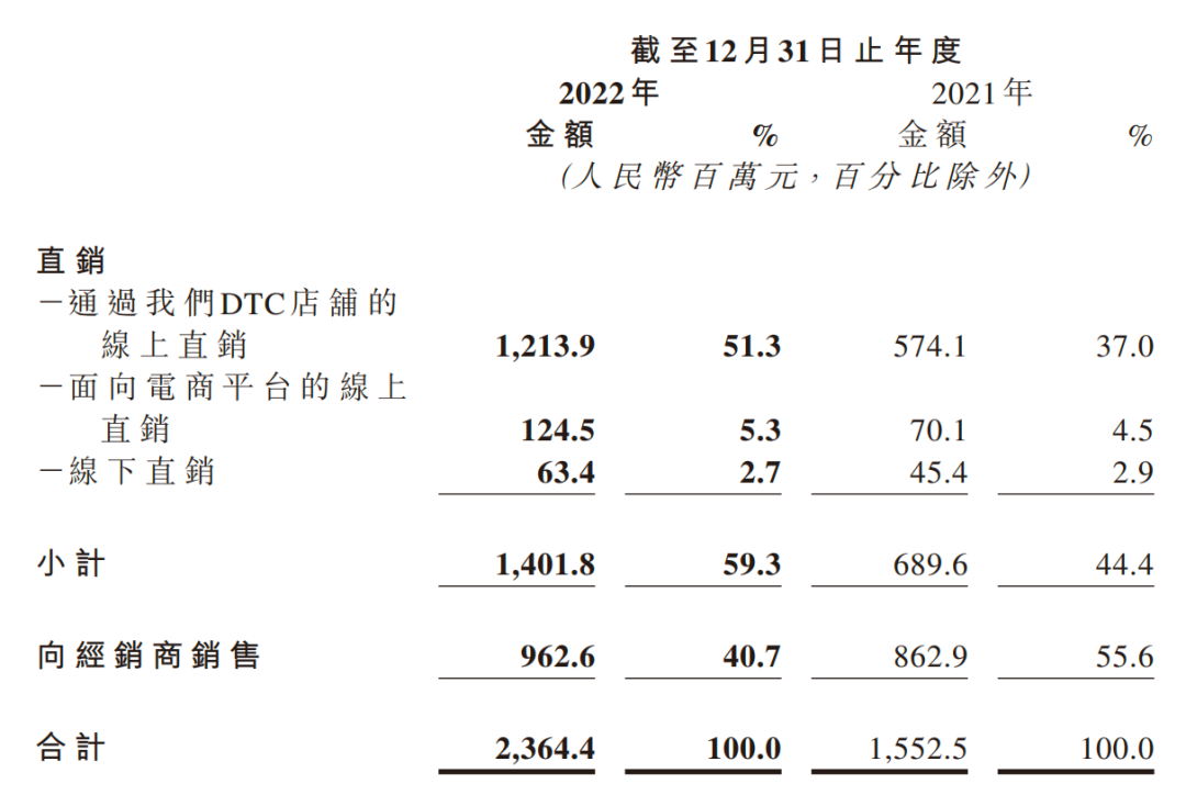 得益于公司加強(qiáng)線上多平臺(tái)布局和精細(xì)化運(yùn)營(yíng),直銷渠道收入達(dá)14億元,實(shí)現(xiàn)翻倍增長(zhǎng),占比進(jìn)一步提升至59.3%,源自線上直營(yíng)渠道快速放量。同時(shí),經(jīng)銷商渠道帶來收入9.62億元,同比上升11.55%,占比由去年的55.6%下降至40.7%,主要原因是渠道持續(xù)調(diào)整。