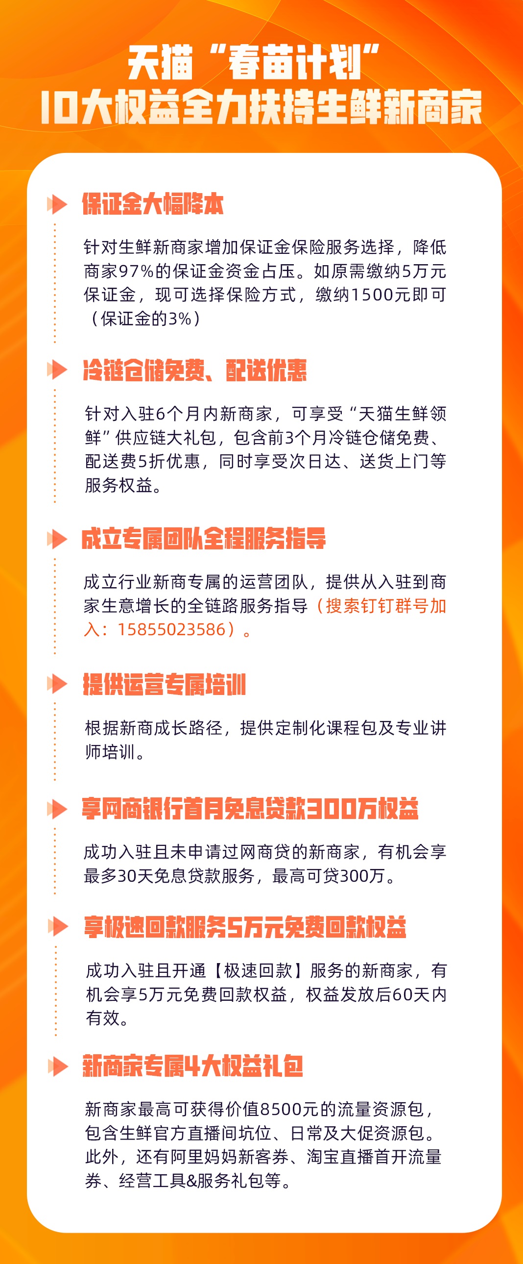 天貓發(fā)布“春苗計劃”,10大權益全力扶持生鮮新商家