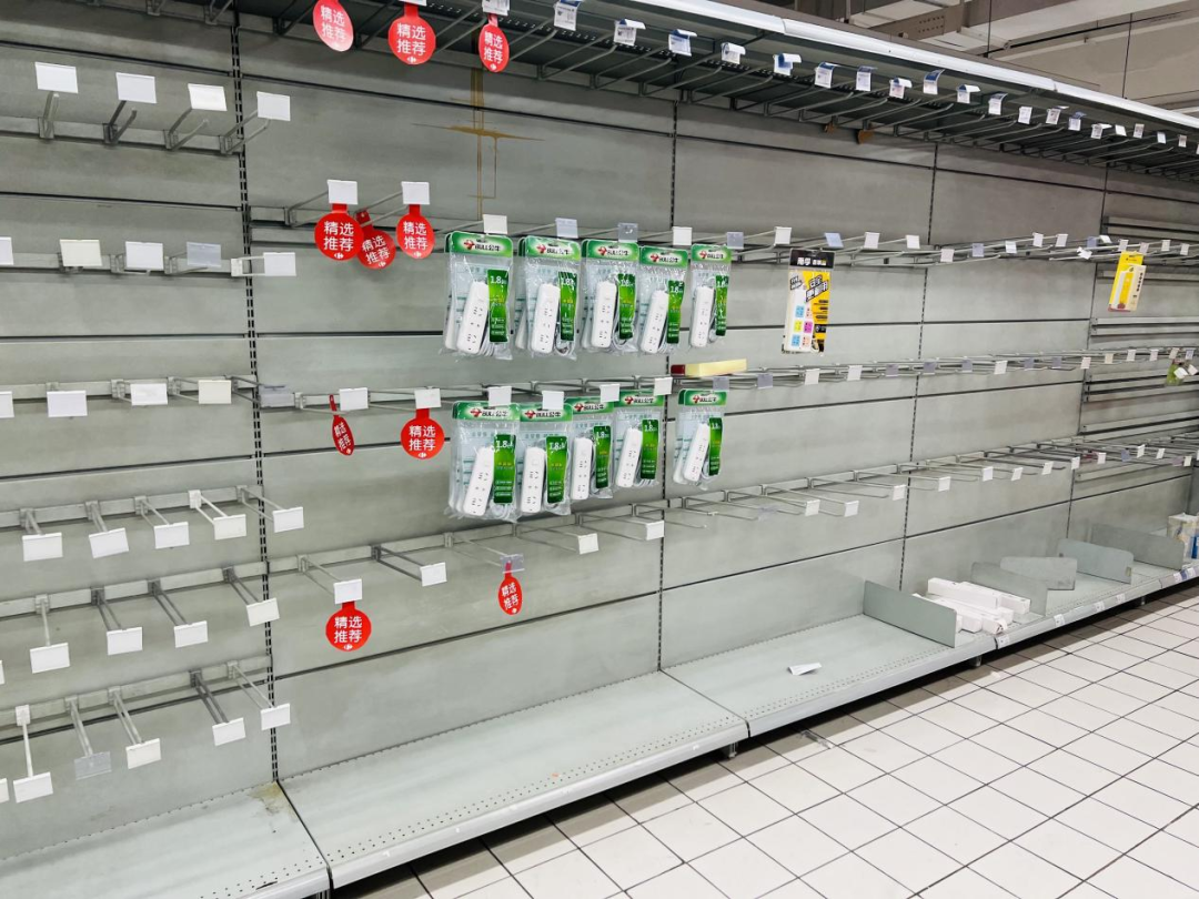 事情最先在微博、抖音等平臺發(fā)酵。在一則熱傳的視頻中,一位中年大叔推著滿滿一購物車紙巾、食用油,急匆匆從沈陽家樂福北站店門口走出來。超市服務(wù)員不忘提醒拍視頻者:“現(xiàn)在看著啥就買,趕緊買!”