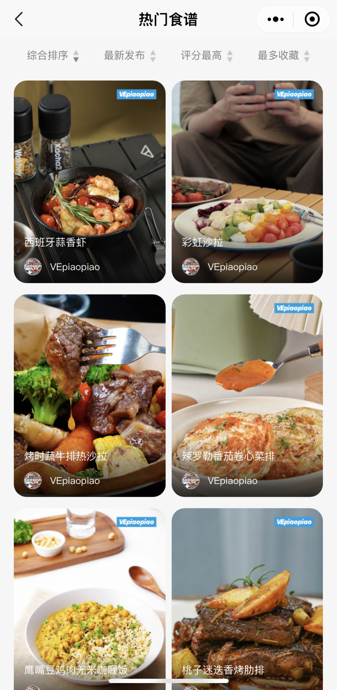 VEpiaopiao通過精美的原創(chuàng)食譜,向年輕用戶輸出品牌文化