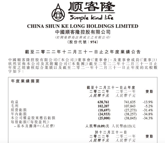聯(lián)商快訊:3月29日晚間,中國順客隆公布了2022年業(yè)績。