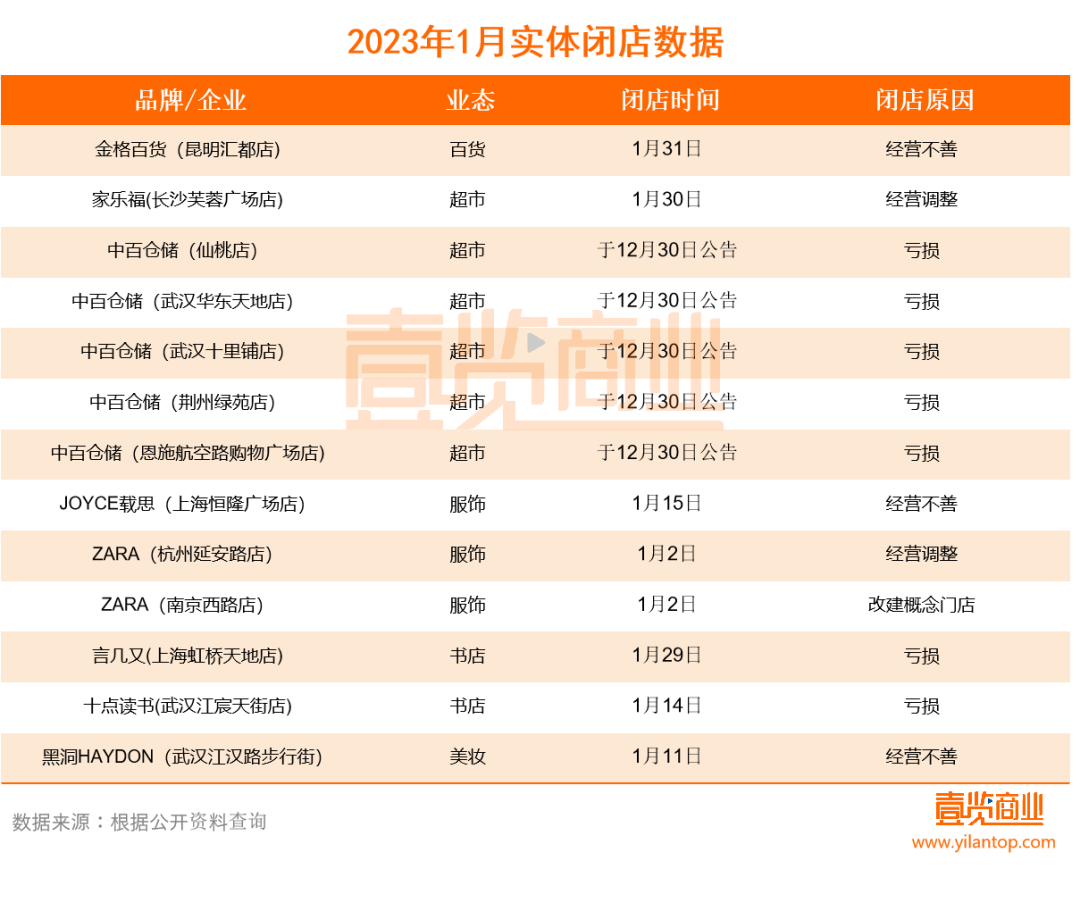 1月閉店13家,商超、書店、服裝集體喊難