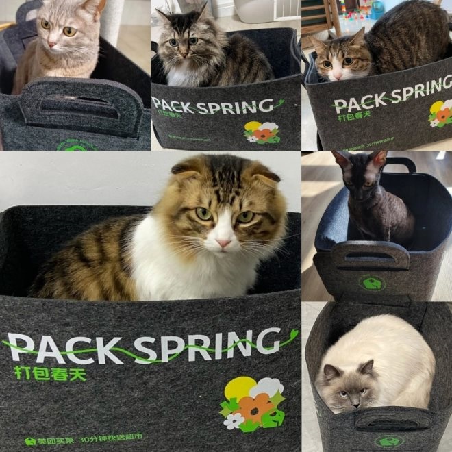 “10個曬收納筐照片的人,8個在曬貓!泵缊F(tuán)買菜相關(guān)負(fù)責(zé)人表示,這本是一次“無心插柳”的促銷活動!坝脩舻男枨缶褪俏覀兊淖非。看到收納筐變貓窩后,我們連續(xù)推出不同顏色收納筐,滿足消費(fèi)者對美好生活的追求,在煙火氣中增添亮色與趣味度”。