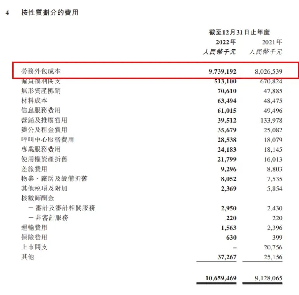 最新財(cái)報(bào)顯示,順豐同城2022年全年?duì)I業(yè)成本為98.18億元,去年同期為80.51億元。其中,2022年,僅勞務(wù)外包成本就達(dá)到了97.39億元。