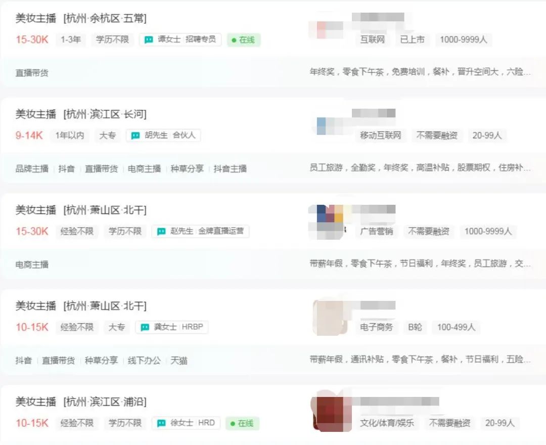 青眼在各招聘軟件看到,目前美妝主播的薪資水平普遍在8000元至1.5萬元之間,也不乏少數(shù)公司開出了最高2.5萬元/月的薪水。根據(jù)各公司對美妝主播的崗位職責(zé)要求介紹,其主要包含了“通過直播向客戶種草產(chǎn)品、展示商品、與粉絲互動(包括回答客戶問題,產(chǎn)品展示、優(yōu)惠券發(fā)放、引導(dǎo)下單等)、普通話標(biāo)準(zhǔn),口齒清晰,表現(xiàn)力強,臨場應(yīng)變能力強、具備一定的美妝功底和一定的美妝產(chǎn)品知識”等能力。