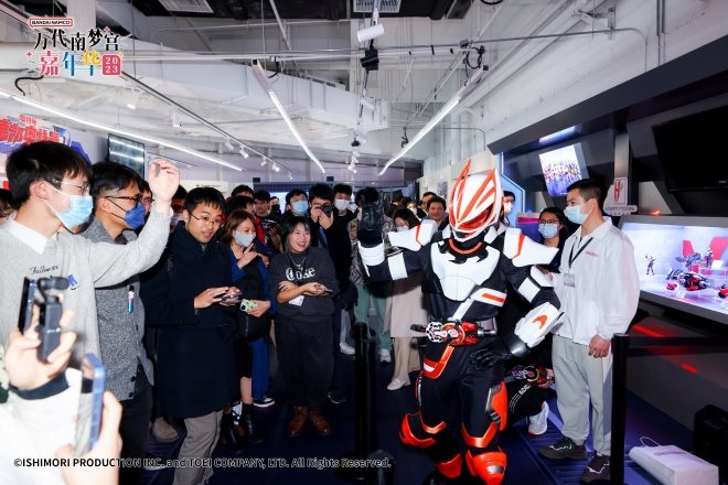 走到展示區(qū)的盡頭,觀眾會(huì)來到英雄們的世界。德凱奧特曼、假面騎士極狐、蟲王戰(zhàn)隊(duì)超王者等多款商品展示,讓粉絲們沉浸其中,拍攝美好的瞬間留念。