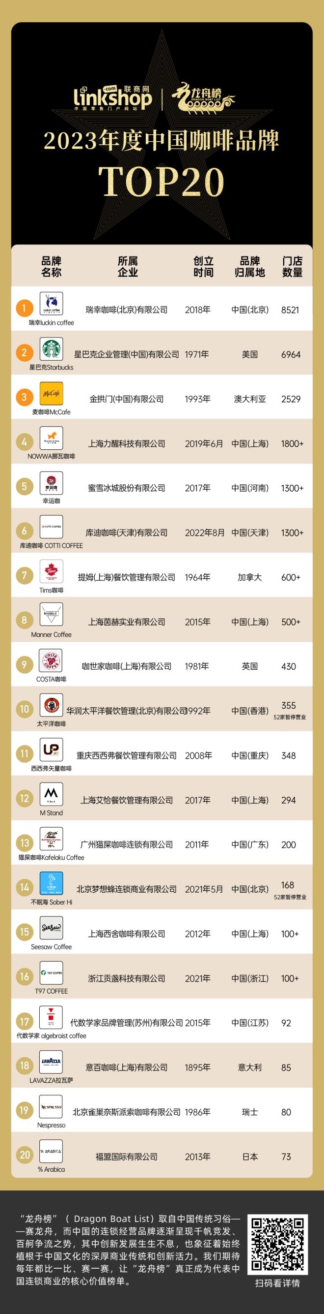 2023年度中國(guó)咖啡連鎖品牌TOP20