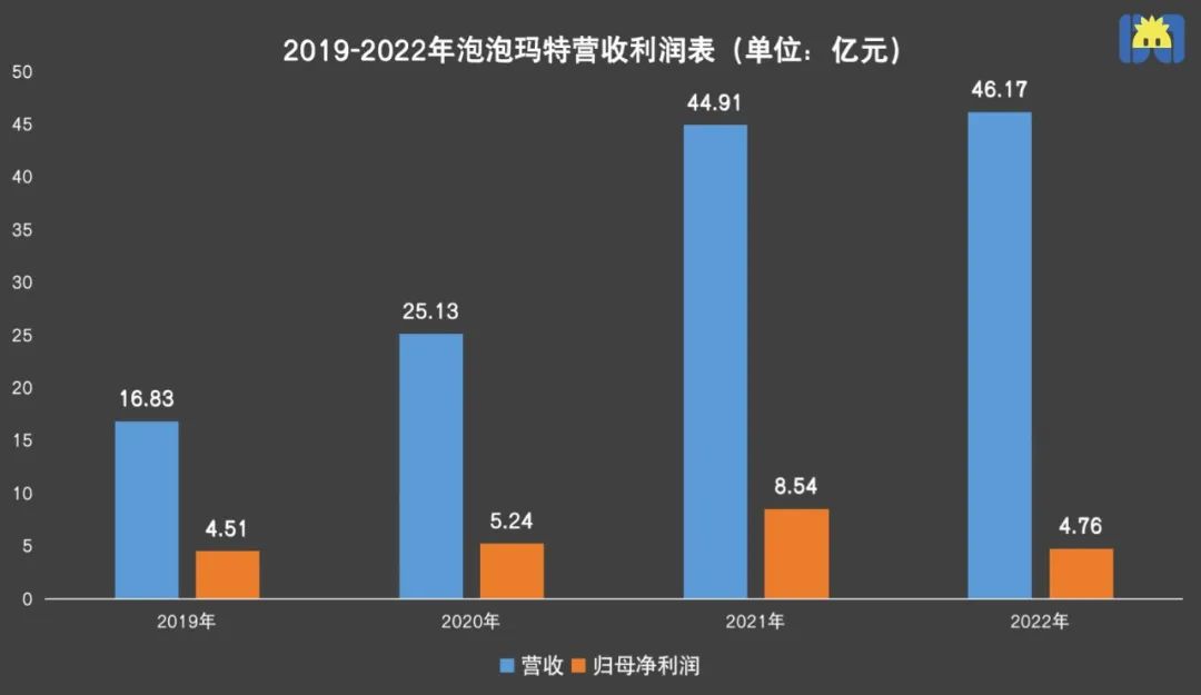 2022年,泡泡瑪特的歸母凈利潤(rùn)為4.76億元,同比下降44.32%。這是泡泡瑪特在過(guò)去四年里,首次出現(xiàn)凈利潤(rùn)下降的情況。2022年泡泡瑪特的凈利潤(rùn)率僅為10.3%,同比下降45.9%,而2019年這一數(shù)據(jù)為26.8%。