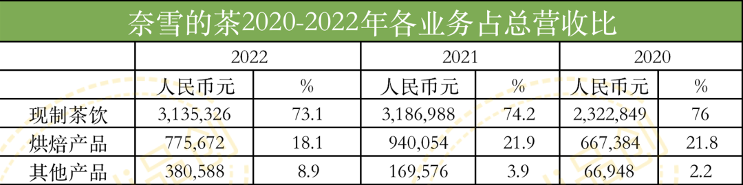 事實上,從2020年開始,現(xiàn)制茶飲在始終占總營收的七成以上。