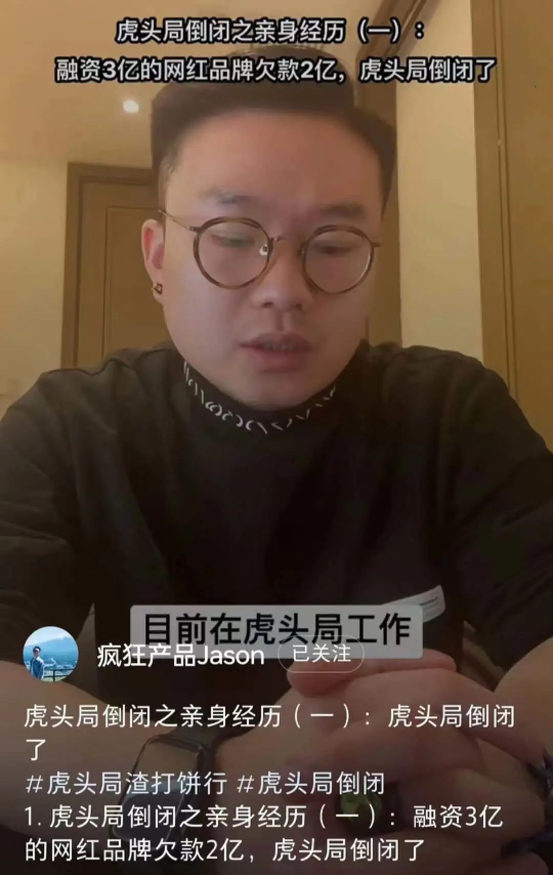 幾個小時后,小紅書平臺又出現(xiàn)“虎頭局倒閉”的第一人稱敘述。