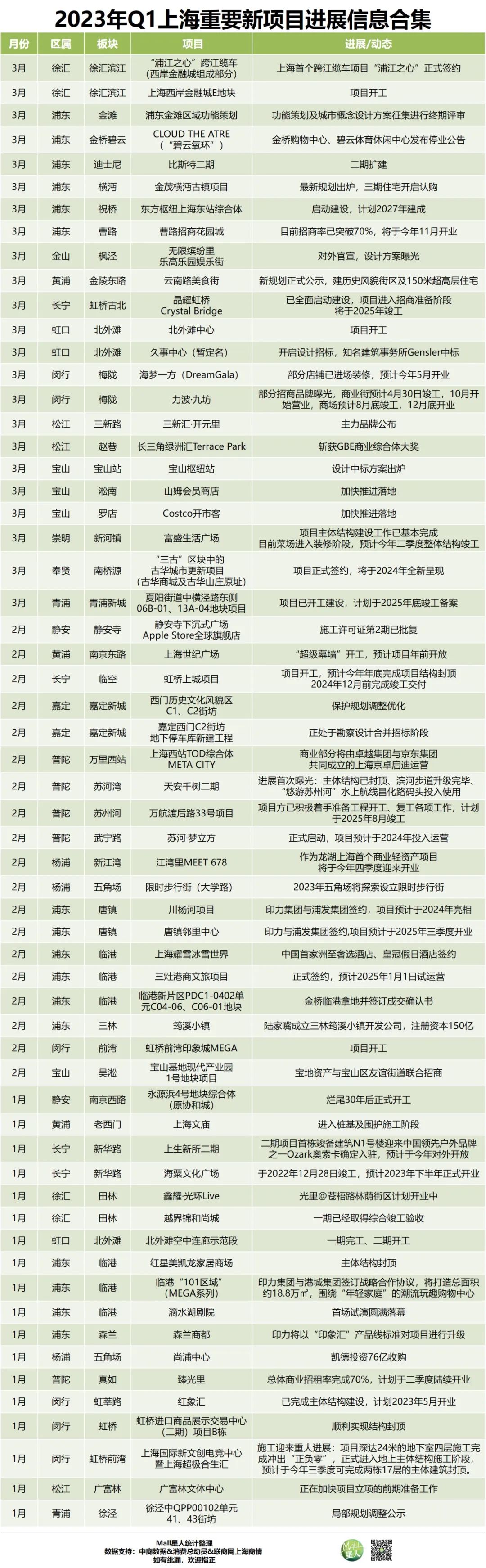 據Mall星人統(tǒng)計,Q1有百余個新項目曝出新動態(tài)(僅指一季度通過官方微信、新聞等渠道曝出新動態(tài)的項目,并非指所有上海新項目的動態(tài)),如: