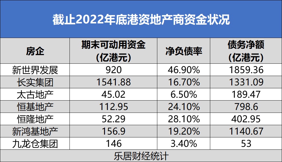 港資地產(chǎn)商進(jìn)退有度,以現(xiàn)金安全為主要。截至2022年底,新世界發(fā)展可動(dòng)用資金達(dá)920億港元,而長實(shí)集團(tuán)可動(dòng)用資金高達(dá)1542億港元。
