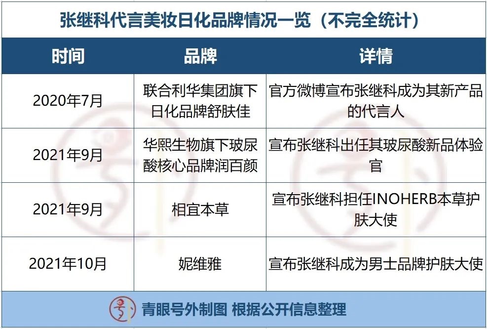 就在今日,青眼號(hào)外注意到,張繼科此前代言的舒膚佳、相宜本草、妮維雅等多個(gè)美妝日化品牌,目前已將其“拉黑”。