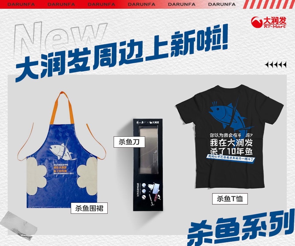 當日,大潤發(fā)上線了“殺魚系列”和“發(fā)”字創(chuàng)意周邊;