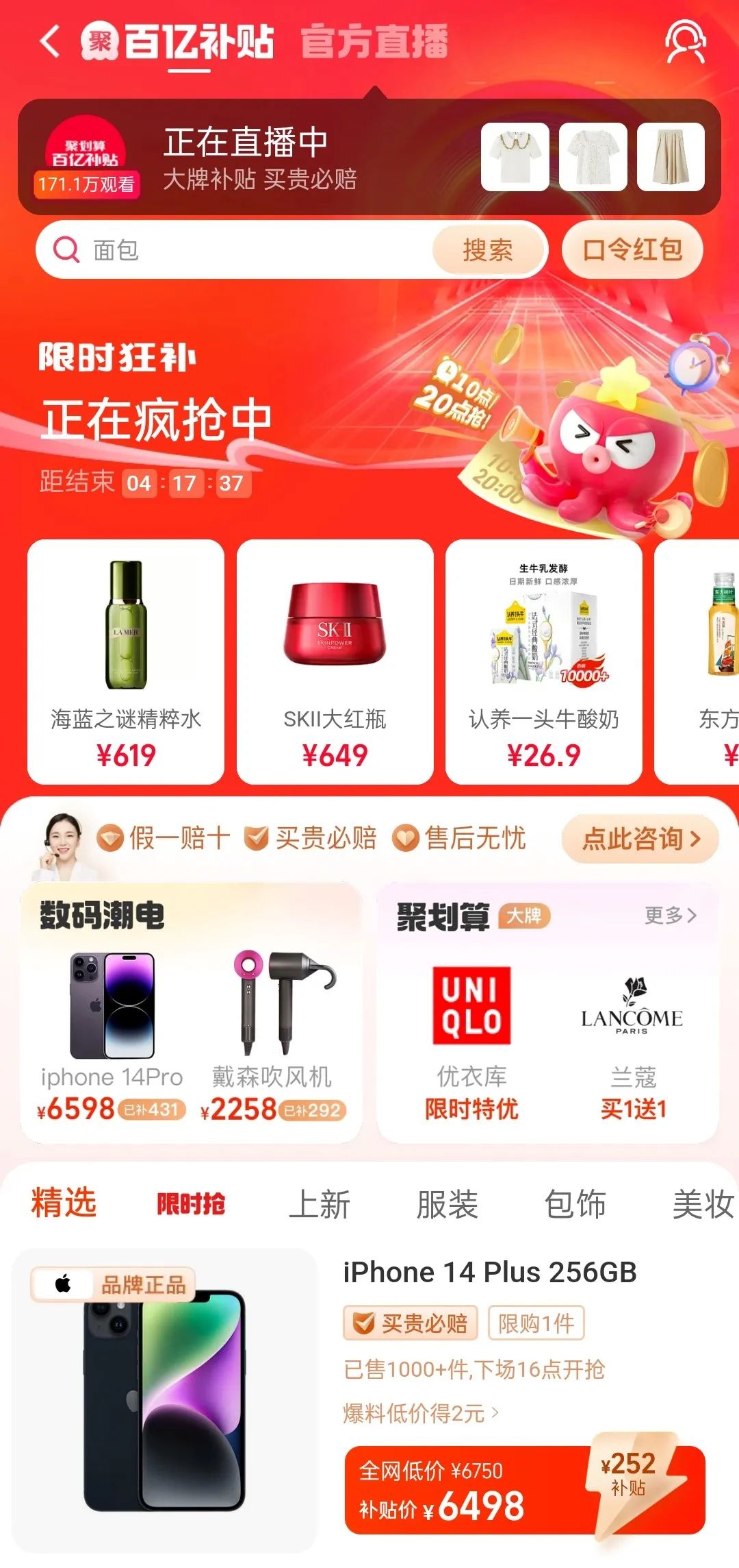 事實(shí)上,阿里早就經(jīng)歷過百億補(bǔ)貼的戰(zhàn)爭。四年前,為了應(yīng)對拼多多的百億補(bǔ)貼,淘寶就推出了聚劃算百億補(bǔ)貼,成為首頁的常態(tài)化營銷活動,但效果并不理想,百億補(bǔ)貼的心智依舊被拼多多牢牢占領(lǐng)。