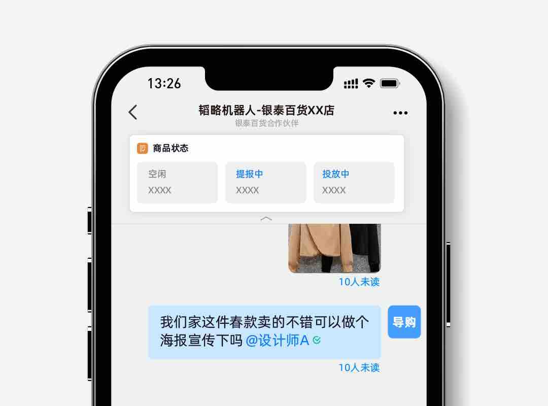 專柜是商場最小的經(jīng)營單元,我們把所有與專柜經(jīng)營相關的角色也進行了數(shù)字化。例如品牌相關人員、品牌專柜導購、銀泰百貨品牌招商人員、銀泰百貨品牌管家。把分散在內(nèi)外部不同組織、不同部門、不同系統(tǒng)的各種信息,整合放進了聊天群里,讓信息在群里沉淀,提高了溝通效率。圍繞入駐專柜角色,一柜一群,銀泰百貨品牌管家可以管理幾十家專柜。