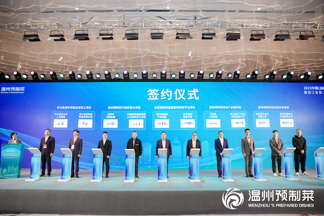 本次大會現(xiàn)場開展多項重點項目活動,12個全省產(chǎn)業(yè)招商、院地合作項目現(xiàn)場簽約,包括浙江省農(nóng)科院米粉類預制菜精深加工研發(fā)項目、物產(chǎn)中大預制菜云銷售平臺項目、鄉(xiāng)村美食產(chǎn)業(yè)發(fā)展合作項目、光明集團陽光定食冷鮮預制菜產(chǎn)業(yè)項目、衢州智慧冷鏈物流基地(二期)項目、湖州市長興縣湖羊及肉制品加工項目、溫州預制菜冷鏈前置倉項目、全國預制菜溫商營銷網(wǎng)絡(luò)平臺項目、浙南預制菜研發(fā)產(chǎn)業(yè)園項目、麥豐預制菜供應(yīng)鏈開發(fā)項目、江南大學與溫州市人民政府戰(zhàn)略合作項目、江南大學技術(shù)轉(zhuǎn)移中心溫州分中心項目、溫州市預制菜產(chǎn)業(yè)投資基金項目。