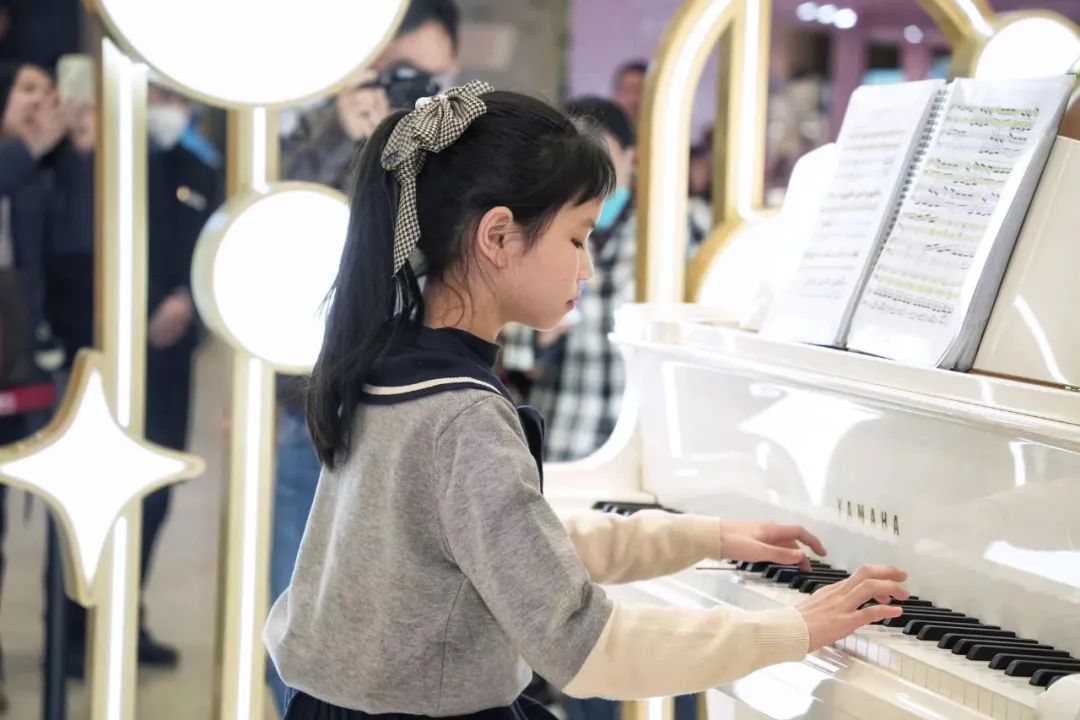 除了“鄰家小舞臺”的非遺文化演出活動,百聯(lián)曲陽在多個樓層安排了文化藝術(shù)舞臺。從百聯(lián)曲陽正門(南門)進(jìn)入中庭,一架白色三角鋼琴映入眼簾。通過鋼琴前的二維碼,小琴童可以預(yù)約進(jìn)行演奏。自今年3月鋼琴“空降”以來,已有55位小朋友報名彈奏。百聯(lián)曲陽也增添了“社區(qū)兒童周周演”“專業(yè)欣賞月月演”兩個社區(qū)文化特色內(nèi)容。