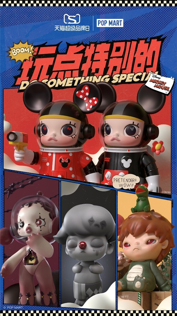 2022年,泡泡瑪特與蒙口、韓美林、大久保、櫻桃小丸子、米奇米妮等IP相繼展開(kāi)合作聯(lián)名,合作的款式均為MOLLY。與此同時(shí),除了MOLLY之外,還為旗下DIMOO、SKULLPANDA、LABUBU等IP推出了MEGA珍藏系列的產(chǎn)品。