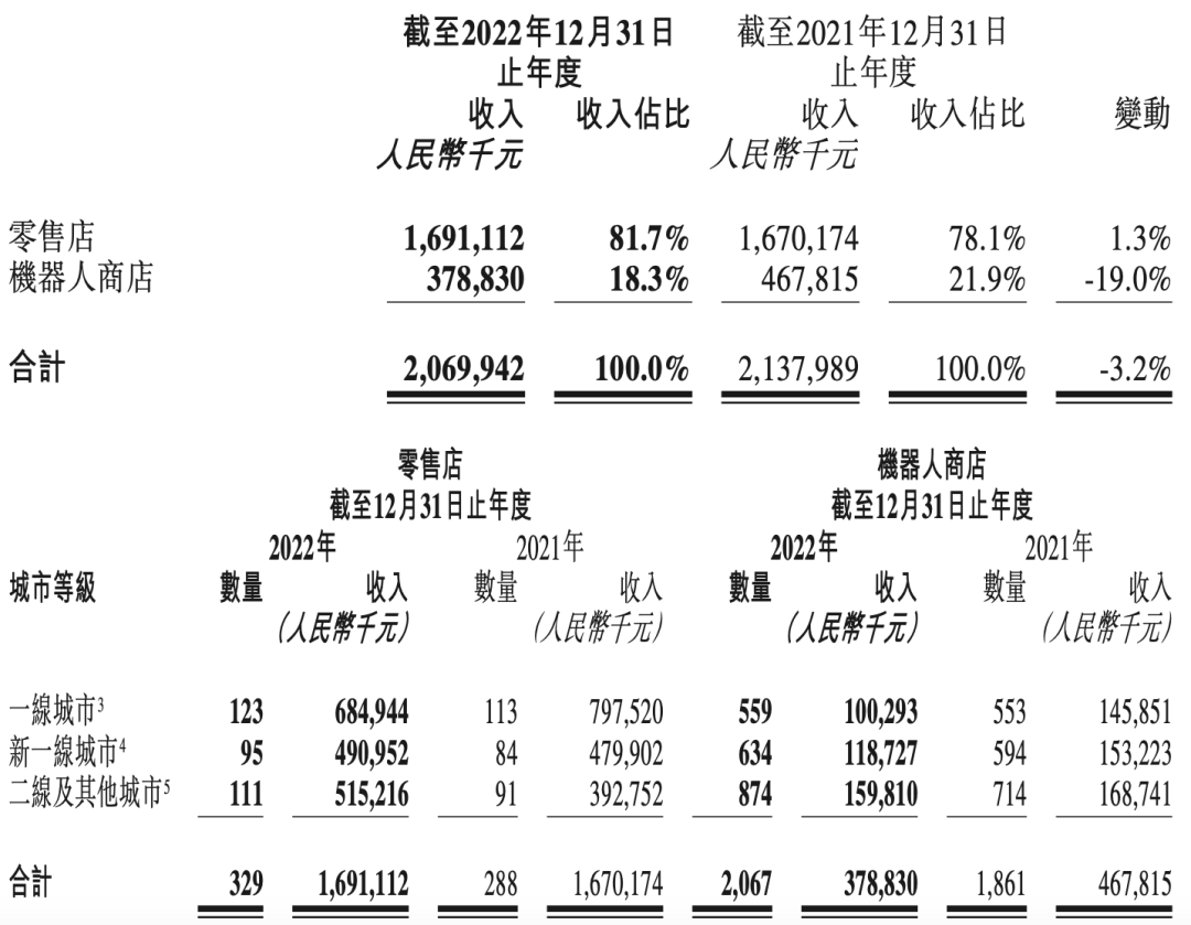 與此同時(shí),機(jī)器人商店在增長(zhǎng)數(shù)量相較于零售店更高的情況下,收入占比進(jìn)一步降低,與機(jī)器人商店購(gòu)物體驗(yàn)不佳、缺乏宣傳支持力、依賴設(shè)點(diǎn)客流量等問(wèn)題上不無(wú)關(guān)系。