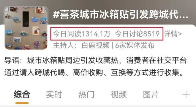 4月6日,喜茶城市冰箱貼引發(fā)跨城代喝現(xiàn)象引熱議,社交媒體相關(guān)話題閱讀量超8000萬。