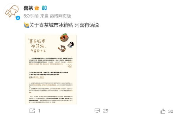 圖:喜茶回應(yīng)城市冰箱貼引發(fā)關(guān)注