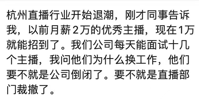 最近,關(guān)于直播電商紅利消失的話題越來越多,3月份以來,直播電商之都杭州傳來消息,說杭州的主播工資開始擠水分了,普遍被腰斬: