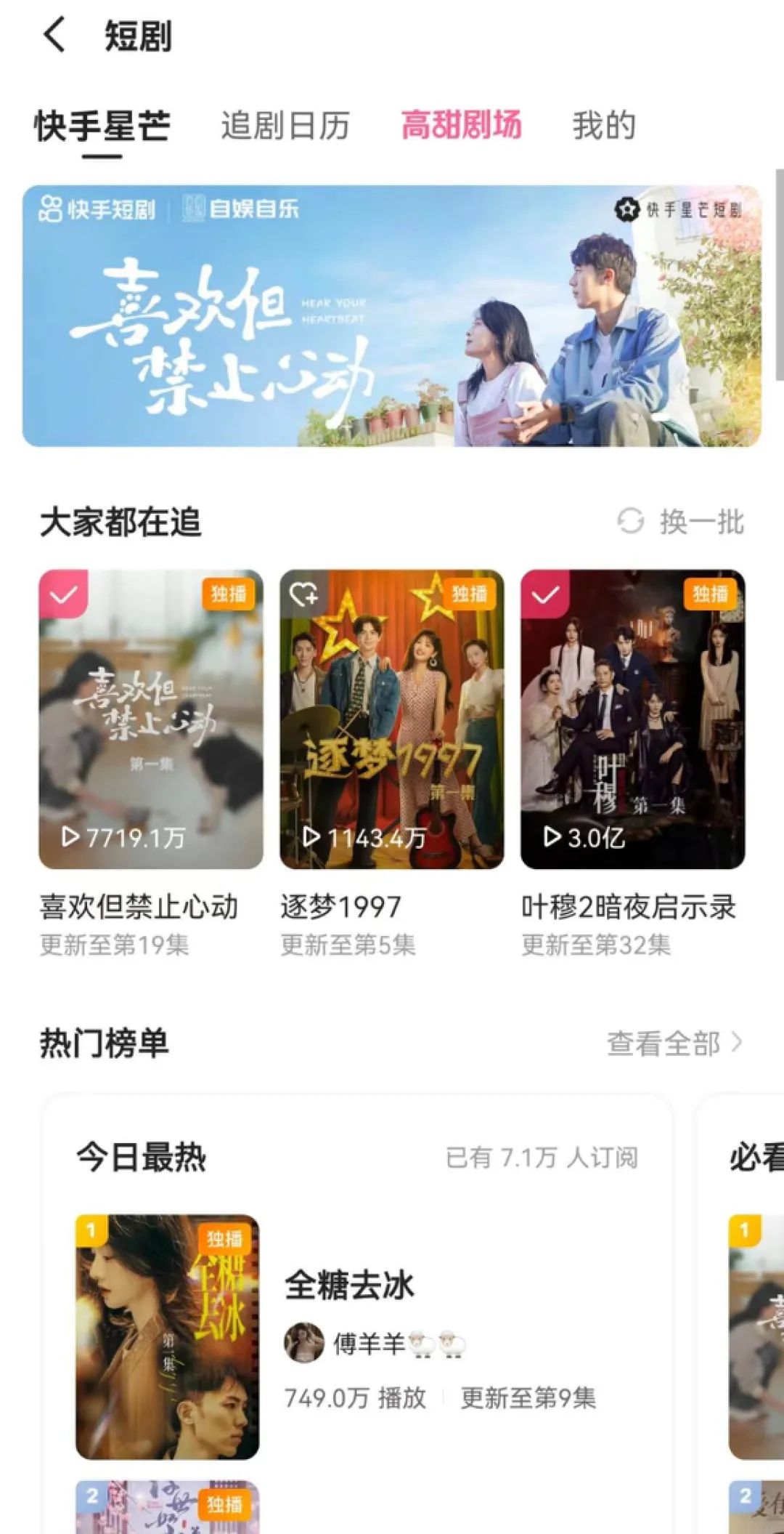 在電視劇制作費用不斷提高的背景下,不少投資方把目光放在了微短劇上?焓中敲⒂媱澰2022年總共出品200多部短劇,其中,截至2022年底單部累計播放量破億的短劇有超過100部。此外,快手還在嘗試廣告、電商和內(nèi)容付費等多種短劇內(nèi)容的商業(yè)化變現(xiàn)模式,已實現(xiàn)創(chuàng)作者和平臺共贏的生態(tài)。