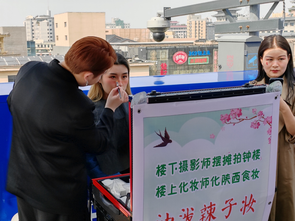 西安銀泰開元商城鐘樓店在網(wǎng)紅天臺(tái)上免費(fèi)化油潑辣子妝