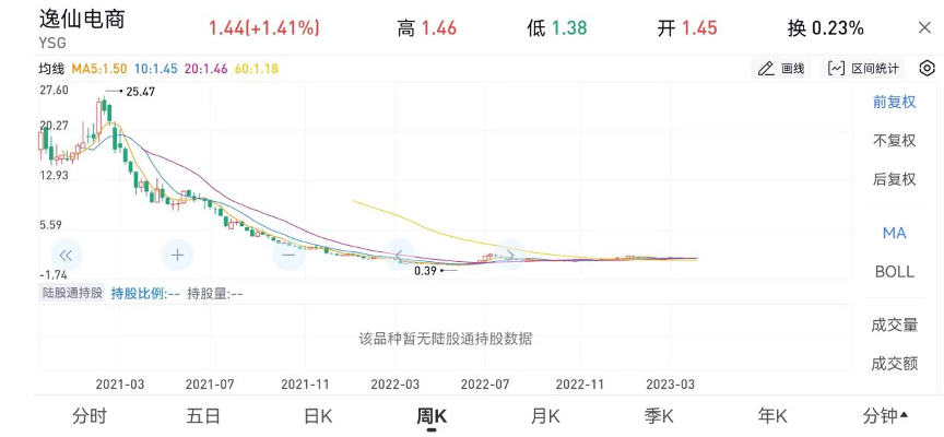 2021年2月,上市不久的逸仙電商(完美日記)摸到了25.47美元的高點,其后展開直線墜落,一年后觸達0.39美元。跌幅98.5%;