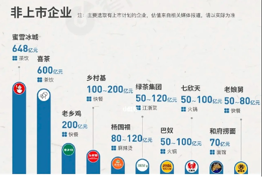 這一點,可以從餐飲行業(yè)上市公司和準上市公司的市值分布大致得到印證。