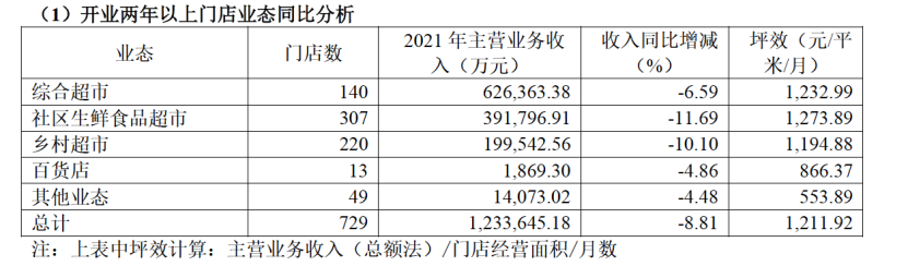 從2021年年報(bào)數(shù)據(jù)中可以看到,生鮮品類的毛利率只有16.47%,而食品化洗及百貨都遠(yuǎn)高于生鮮,其中百貨毛利率達(dá)到35.93%。