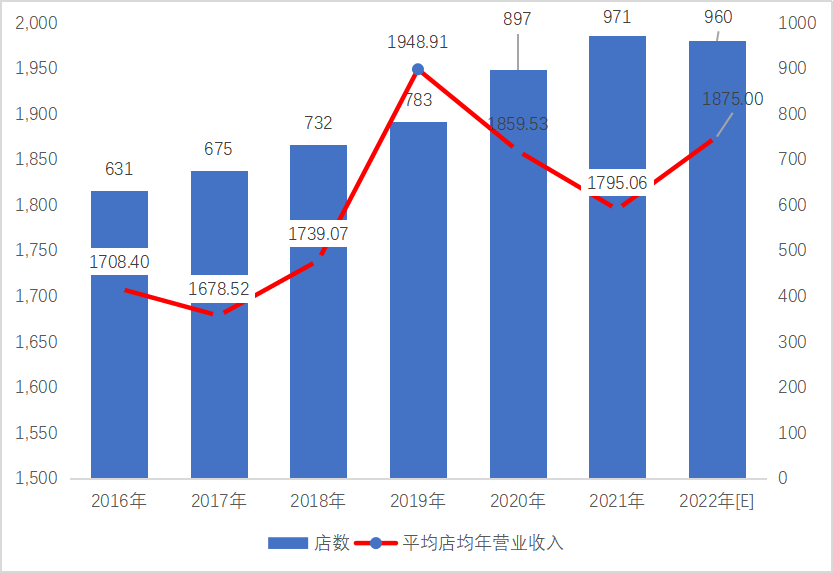 受疫情反復(fù)營(yíng)銷,家家悅在這兩年間整體營(yíng)收增長(zhǎng)并不沒(méi)有同店數(shù)增長(zhǎng)的比例一致,平均店均年?duì)I業(yè)收入從2019年的頂峰1948萬(wàn)元,連續(xù)兩年出現(xiàn)下滑,在2021年跌至1795萬(wàn)元。
