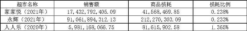 在一定的范圍內(nèi),區(qū)域密度越高、邊際成本越低。因此,家家悅可以以極低成本做到生鮮行業(yè)很難實(shí)現(xiàn)的“一日兩送”。這也使其生鮮的損耗,不論是自然、人為及庫(kù)存損耗都得到有效控制。作為生鮮占比近半的零售業(yè)態(tài),商品損耗是生鮮超市企業(yè)不可避免的管理費(fèi)用支出,而2021年家家悅整體商品損耗只占營(yíng)收的0.238%,不到百分之一,與永輝超市幾近一致。