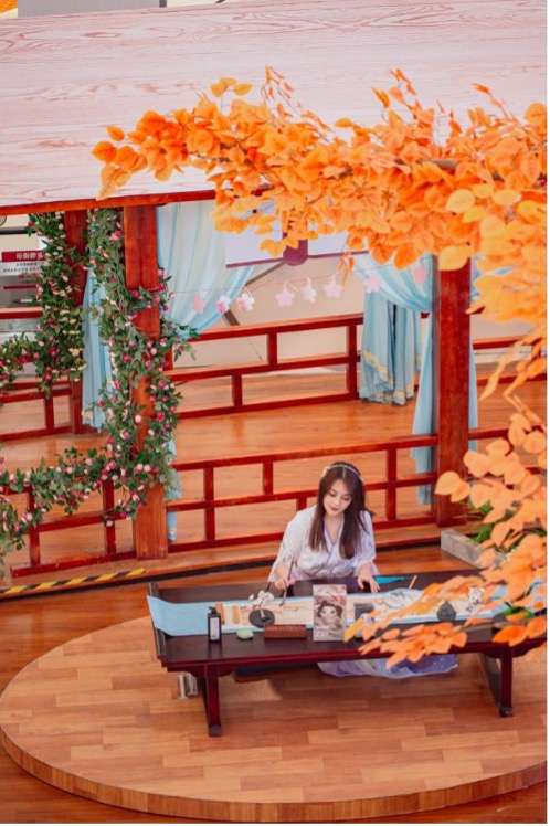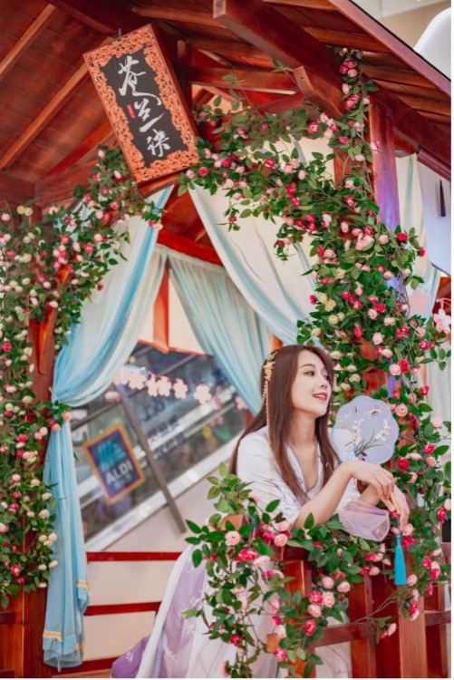 配合主題展,活動(dòng)方還設(shè)置了任務(wù)集卡、送海報(bào)、抽獎(jiǎng)、換明信片等活動(dòng),與商場(chǎng)內(nèi)的品牌聯(lián)動(dòng),調(diào)動(dòng)起了消費(fèi)者的購(gòu)物積極性。不僅四月每周末有不同主題的花房手作,五一期間還能欣賞到古風(fēng)音樂會(huì)、漢服秀等形式多樣的表演。