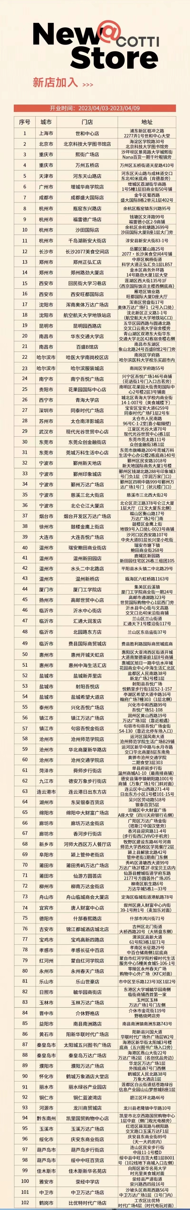 近日,據(jù)聯(lián)商網(wǎng)友爆料,4月3日至4月9日一周時間,庫迪咖啡以洪水之勢在全國近100家城市瘋狂開店,發(fā)展勢頭迅猛。此前,據(jù)聯(lián)商網(wǎng)推出的《2023年度中國咖啡連鎖品牌TOP20》榜單所示,截止3月底,庫迪咖啡全國門店共計1300多家。