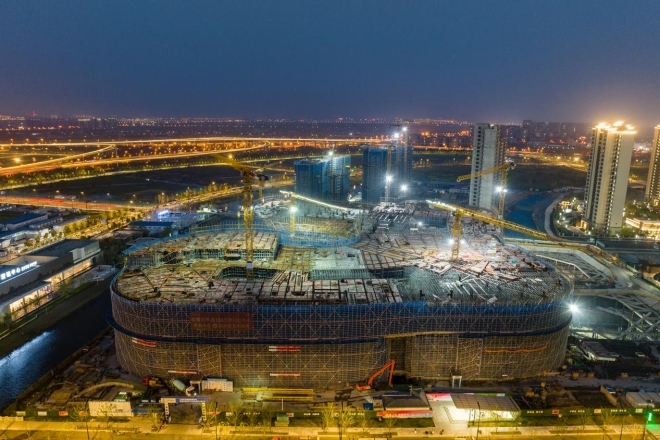 隨著商業(yè)與住宅的同步施工,金鷹世界藍(lán)圖漸顯。