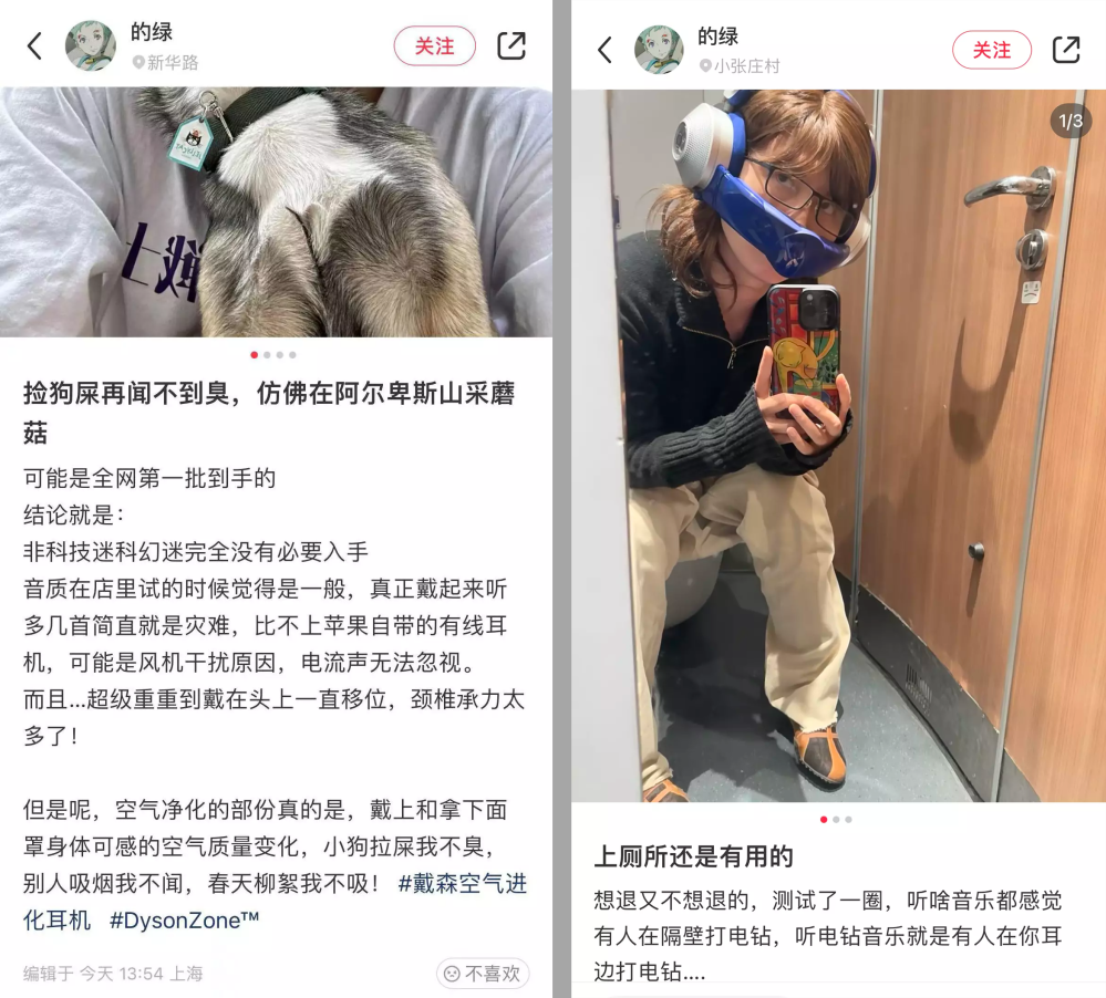 一副有點(diǎn)獵奇,又很符合品牌調(diào)性的空氣凈化耳機(jī),雖然也被吐槽“要凈化空氣有比這好用的,要聽歌更有比這好用的”,但至少為戴森掙回了久違的討論度。