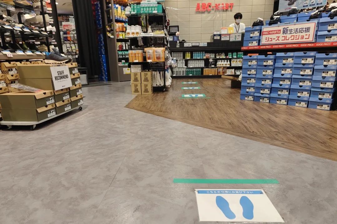 在雜貨店,則用小腳印標(biāo)記出了收銀臺(tái)的方位,以及恰當(dāng)?shù)呐抨?duì)距離。