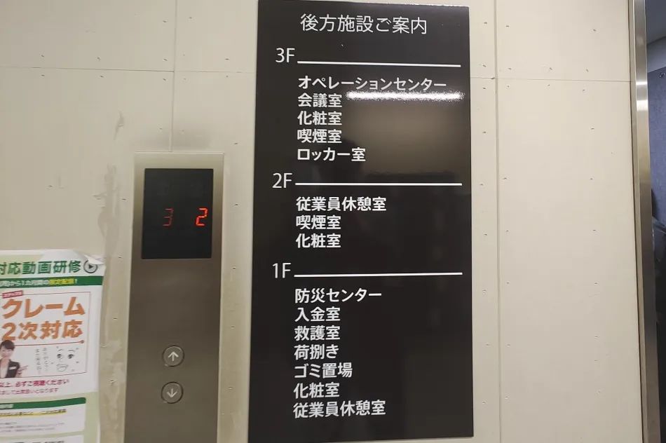 電梯旁的垂直樓層分布指引(針對(duì)后勤空間),也一目了然。至少目前我在國(guó)內(nèi),還沒(méi)有見(jiàn)過(guò)后場(chǎng)貨梯旁的墻面上,有標(biāo)注各樓層不同后勤功能的。
