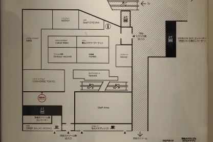首先,后場(chǎng)通道內(nèi)的導(dǎo)視圖,標(biāo)注詳細(xì)程度不亞于前場(chǎng)給顧客的導(dǎo)覽。包括各類(lèi)店鋪名稱(chēng)、后勤區(qū)域、通道、出入口等等。